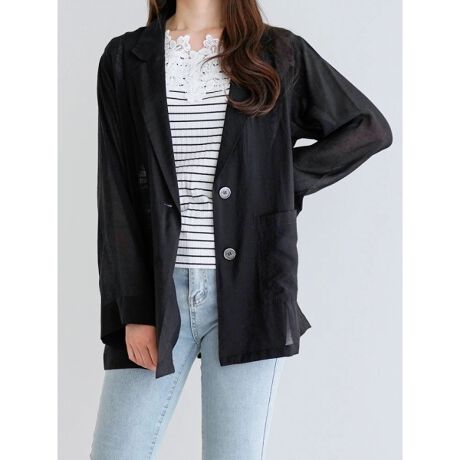 ゆるめのシルエットとシアー素材がシーズンムードを演出するジャケット