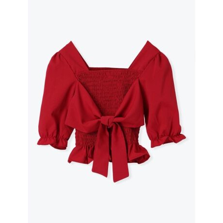 大き目胸リボンがスィート度100%無地シャーリングリボントップス