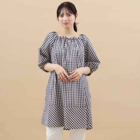 マルイウェブチャネル   /   ワンピースドレス   /   ワンピース   /   【洗える】チェック柄スクエアネックチュニック