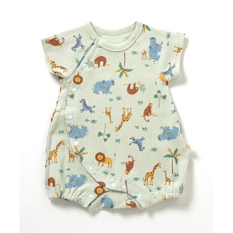 apres les cours(アプレレクール)のカバーオール・ロンパース「リブ総柄ロンパス」は、やさしいニュアンスのナチュラルなデザイン。ベビーギフトや出産祝いの主役にも♪