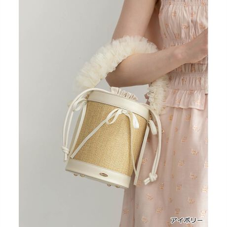 チュールフリルのハンドルがフェミニンな印象のカゴバッグ。