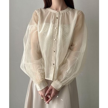 Meiru ゴールドボタンシアーシャツ