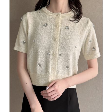 ビジュー半袖ニットカーディガン