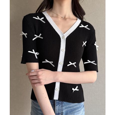 リボン半袖Vネックカーディガン