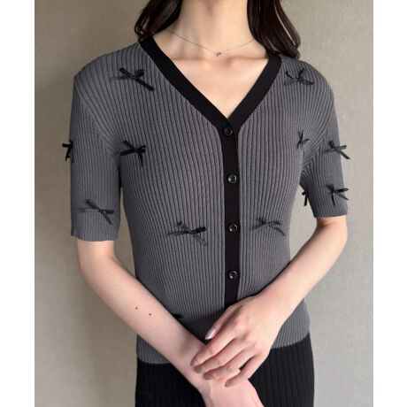 サイズ:M-L(約cm)<br />M:身幅36 肩幅34 着丈50 そで丈22<br />L:身幅40 肩幅36 着丈54 そで丈24<br />素材<br />本体:レーヨン89% ナイロン11% リボン:ポリエステル100%<br />■原産国<br />中国<br /> <br>着用モデル:身長154cm Mサイズ着用<br>※サイズ感を画像でご確認の上、ご検討ください。<br> <br> ※商品画像は撮影時の光や角度により、実物の色味と異なって見える場合がございます。<br> ※撮影はサンプル品を使用しており、表示のサイズ感も実物とは若干異なる場合もございますので、 予めご了承ください。<br> ※生産時期により色・素材・サイズ感など多少異なる場合がございます。予めご了承ください。