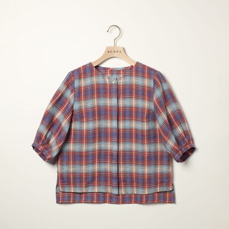 リネンチェックブラウス