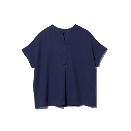 肩から落ちる袖付きで腕周りをカバーしています。くるみ釦もアクセントになっています。