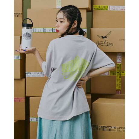 JANTZEN由来のポートランドの山々と湖畔をイメージしており、山の部分はPORTLAND,OREGON、下の湖畔の部分にJANTZENロゴが揺らいでいます。