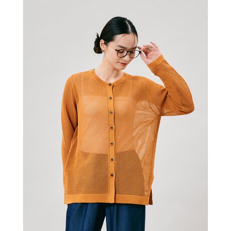 透かし柄のメッシュ編みで仕上げたカーディガンです。