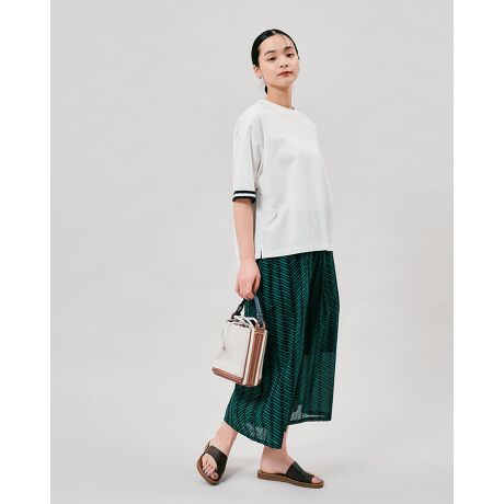 肌触りの柔らかなコットンローンにリーフプリントを施した生地を使用したギャザーパンツです。
