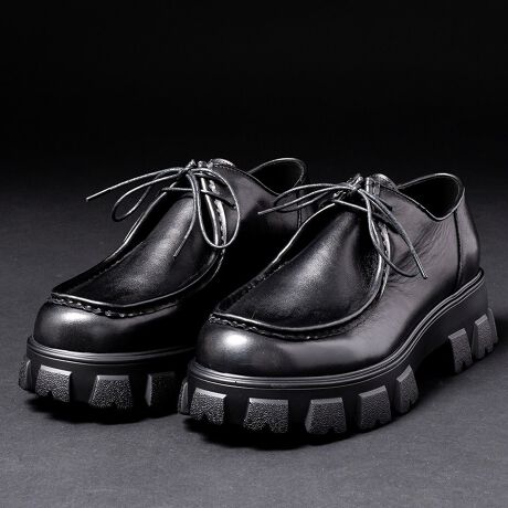 厚底の軽量ソール仕様で、見た目の重厚感とは違い、履き心地は軽快。
