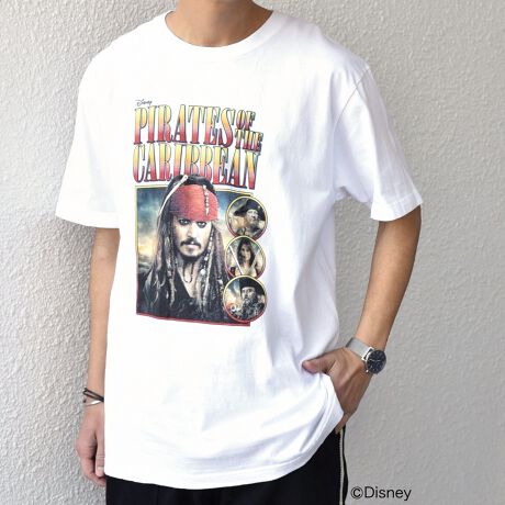 映画「パイレーツ・オブ・カリビアン』のグラフィックがプリントされたTシャツ。