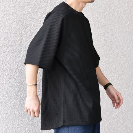 さらっとした着心地のワッフル素材を使用した、シンプルなTシャツ