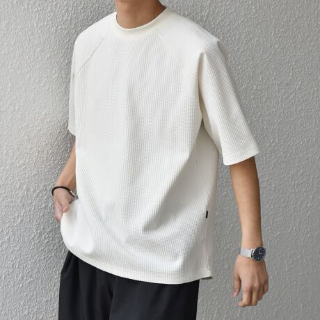 さらっとした着心地のワッフル素材を使用した、シンプルなTシャツ