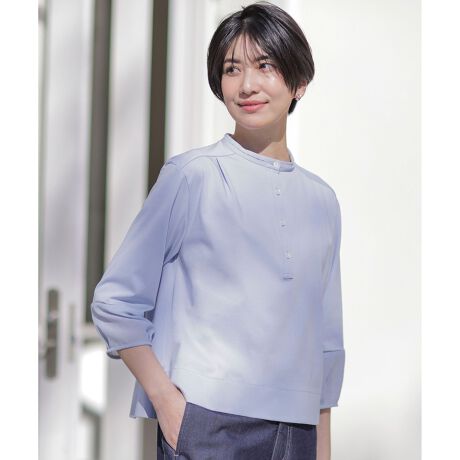 ブラウスライクなのに着心地抜群!シーン問わず使えるバンドカラーカットソー