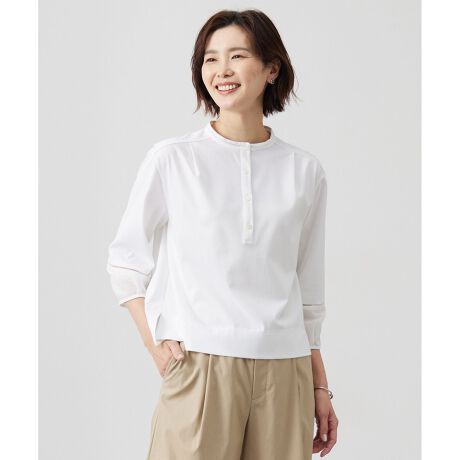 ブラウスライクなのに着心地抜群!シーン問わず使えるバンドカラーカットソー