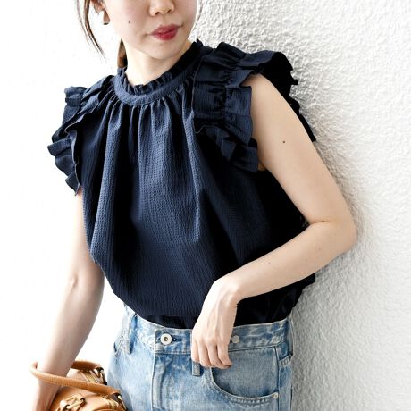 フェミニンさと上品さを兼ね備えた、ノースリーブブラウス。
