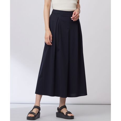 ■デザインセンターフロントに突き合わせタックを入れ、股上を見えにくくしたタックスカート見えのフレアーパンツ。さらっとした素材なので、穿き心地のよいものになっており、暑い季節でも快適な素材感でデイリーに活躍します。分量あるけ回しがエレガントさを出し、春の女性らしいコーディネートに役立つアイテムです。同素材のカットソーとセットアップ着用もおすすめです。