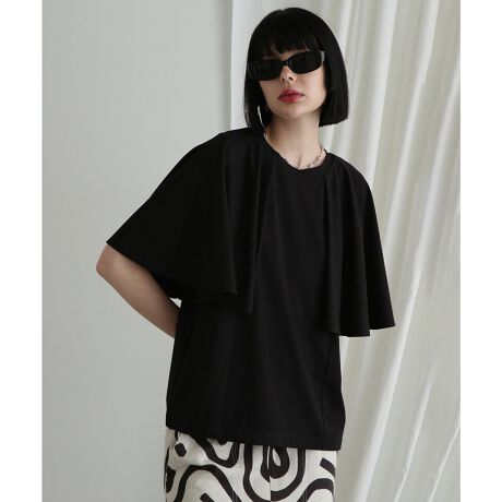 程よい光沢感が上品でクラシカルな印象のケープデザインTシャツ