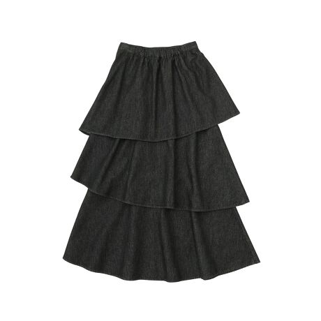 カジュアルと女性らしい2つの印象がミックスされたデニム素材のティアードスカート。
