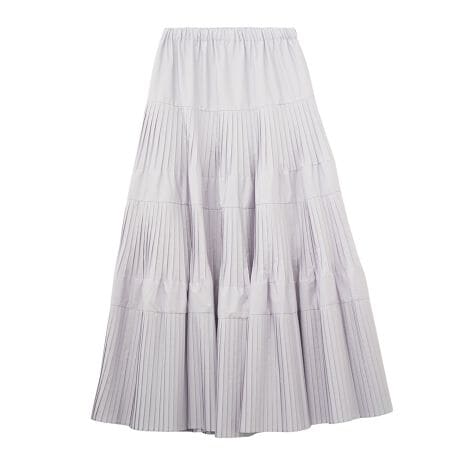 動くたびに揺れるプリーツティアードが女性らしく、コーデの主役になるスカート。