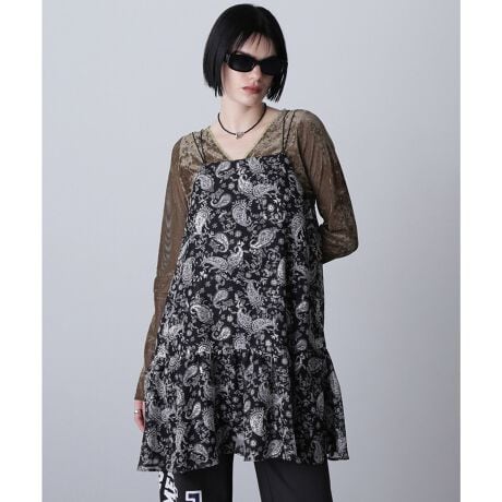 ペイズリー柄のプリントが入ったカットジャカード生地のキャミワンピース。