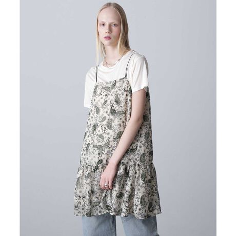 さりげない価値観のある生地が魅力のプリントキャミワンピース