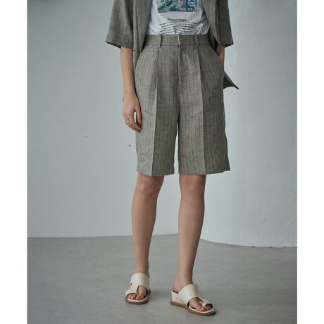 清涼感のあるドライタッチな麻素材に遊び心のあるラメをミックスした麻ショートパンツ