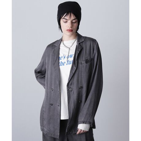 テーラードカラーとダブルブレストのデザインで、ジャケットとしてもシャツとしても着用できる汎用性の高いアイテム。