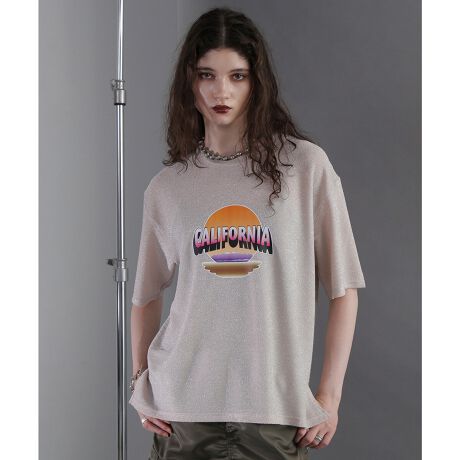 (OKIRAKU×ROSEBUD)グリッタープリントTシャツ