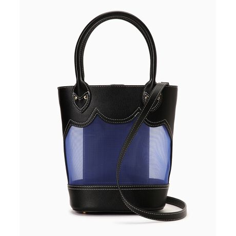 レザー風素材とシアーなメッシュ素材を使った、コントラストがアクセントに効いたトートバッグ。