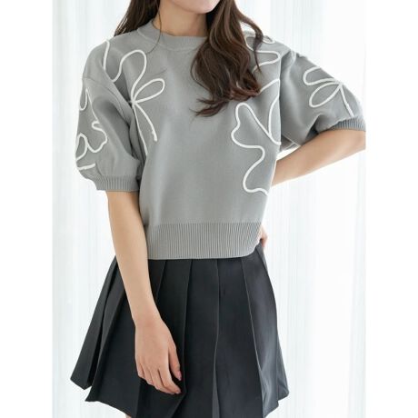 ポリエステルの軽やかな伸縮性ニット×綿紐ライン刺繍