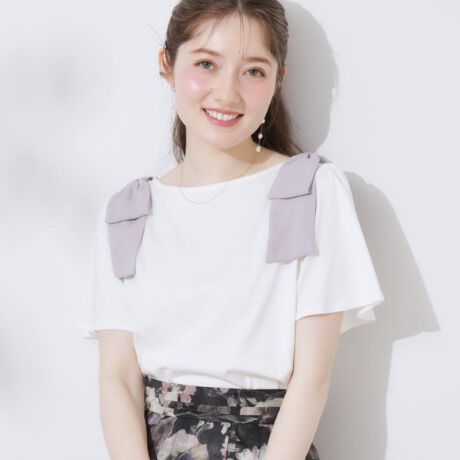 マルイウェブチャネル   /   クチュールブローチ   /   トップス   /   Tシャツ・カットソー   /   【リボン・マシンウォッシャブル・UV機能・接触冷感】肩リボントップス