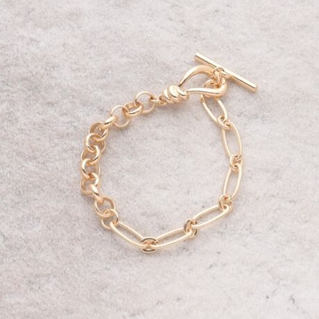 2種のチェーンを使用した程よい大きさのチェーンブレス