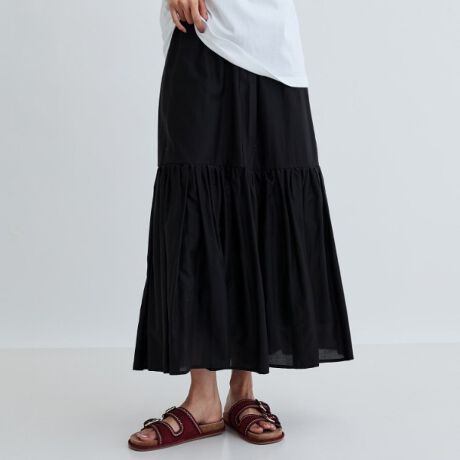 軽やかなティアードデザインのスカートは、流れるようなシルエットが魅力的。