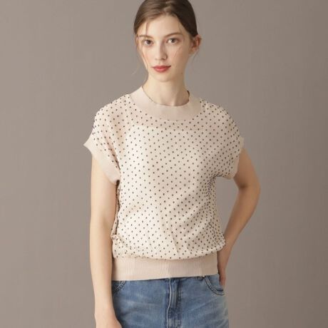 フェミニンなドットジャカード素材とカジュアルなリブディテールを組み合わせた、新作プルオーバーが登場しました。