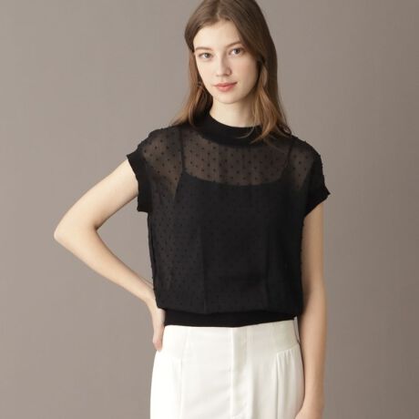 フェミニンなドットジャカード素材とカジュアルなリブディテールを組み合わせた、新作プルオーバーが登場しました。