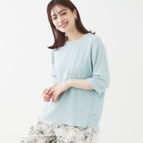 程よくゆとりのあるサイズ感で体型カバーも叶う表面感のある素材のカトップス。