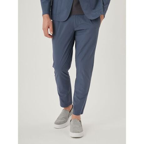 シンプルに軽さを意識して無駄を省き、素材の良さをいかした洗練された合繊パンツ。ウエストのゴム仕様、ドローコードの2 WAY仕様といった、気分やコーディネートによって着こなしを変化出来るよう工夫しています。ベルト内側にシリコンテープを入れることで、滑りがちな合繊素材のデメリットをカバーしているのも嬉しいポイントです。シルエットは腰から膝にかけては少し余裕をもたせながら、裾にかけてはきれいなラインがでるようにテーパードを効かせています。同素材のジャケットとのセットアップはもちろん、タウンユースからオフィスカジュアル、しいてはスポーツシーンまで使用できる汎用性の高いアイテムに仕上がっています。