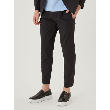 シンプルに軽さを意識して無駄を省き、素材の良さをいかした洗練された合繊パンツ。ウエストのゴム仕様、ドローコードの2 WAY仕様といった、気分やコーディネートによって着こなしを変化出来るよう工夫しています。ベルト内側にシリコンテープを入れることで、滑りがちな合繊素材のデメリットをカバーしているのも嬉しいポイントです。シルエットは腰から膝にかけては少し余裕をもたせながら、裾にかけてはきれいなラインがでるようにテーパードを効かせています。同素材のジャケットとのセットアップはもちろん、タウンユースからオフィスカジュアル、しいてはスポーツシーンまで使用できる汎用性の高いアイテムに仕上がっています。