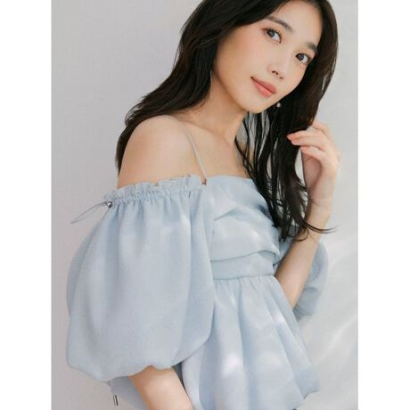 たっぷりとしたボリュームのパフスリーブは、肩に乗せても、オフショルダーにもできるデザイン。