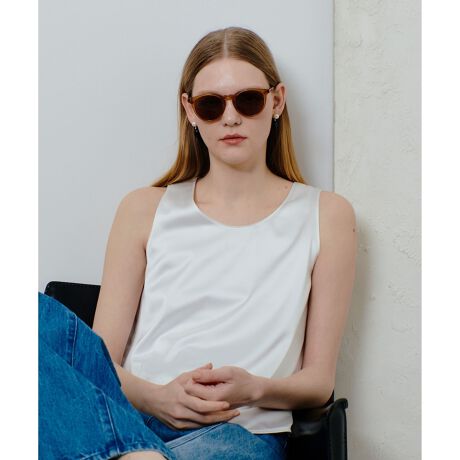 しなやかな落ち感と程良い艶感が上品な印象を与えるサテンタンクトップです。