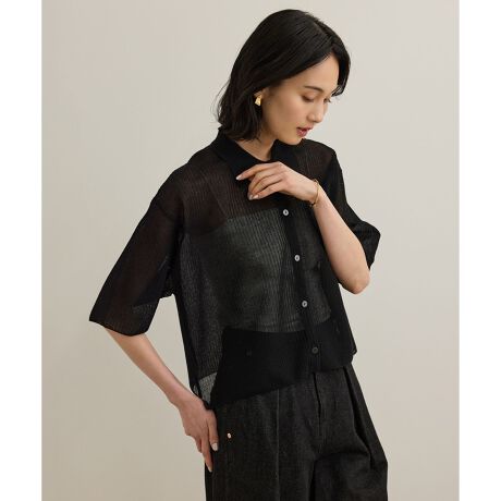 ラミーとポリエステルのドライタッチで清涼感のある素材感がポイントです。針抜きの表情ある編み地がより軽さを出しています。
