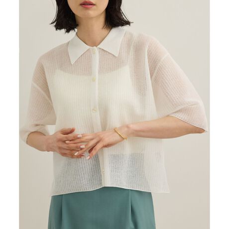 ラミーとポリエステルのドライタッチで清涼感のある素材感がポイントです。針抜きの表情ある編み地がより軽さを出しています。