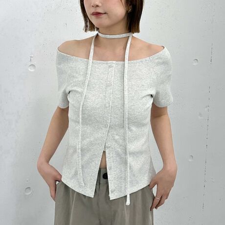 チョーカー×オフショルで韓国っぽスタイリングにおすすめトップス。