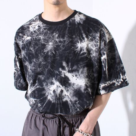 ・タイダイ柄を全体的に配したクルーネックTシャツ