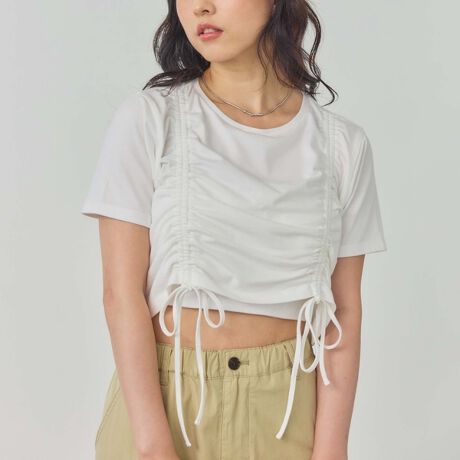 フロントギャザーで肌見せ具合を調節できるチビTが登場。