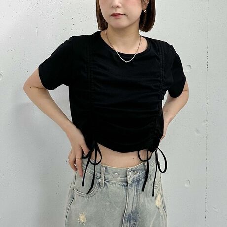 フロントギャザーで肌見せ具合を調節できるチビTが登場。