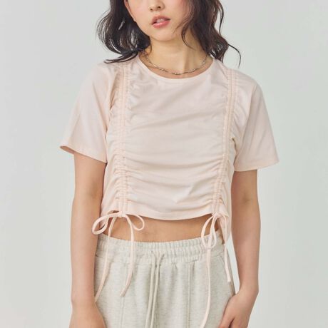 フロントギャザーで肌見せ具合を調節できるチビTが登場。
