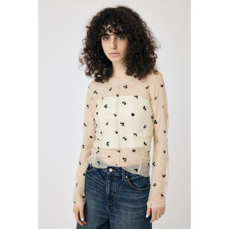 FLORAL TULLE GATHER ロングスリーブTシャツ